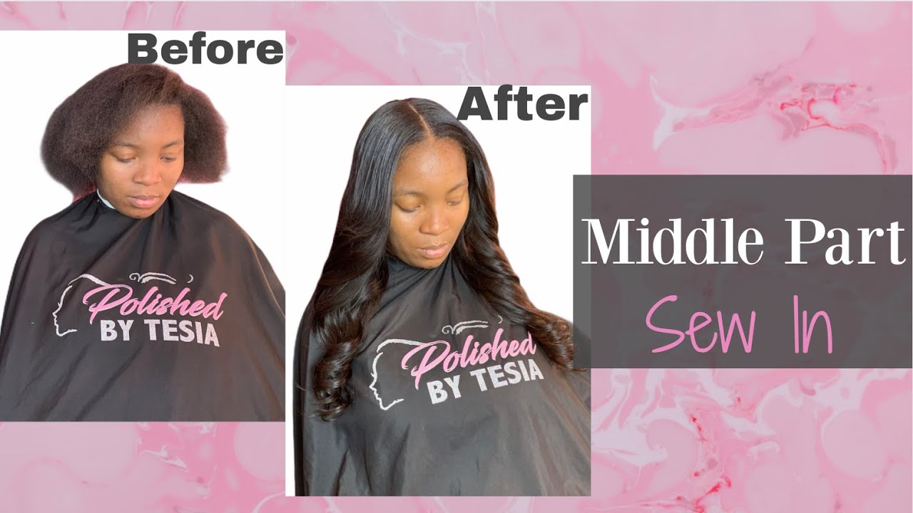 Middle Part Sew In Very Detailed Traditional Sew In L Hair Transformation Polishedby Tesia Youtube